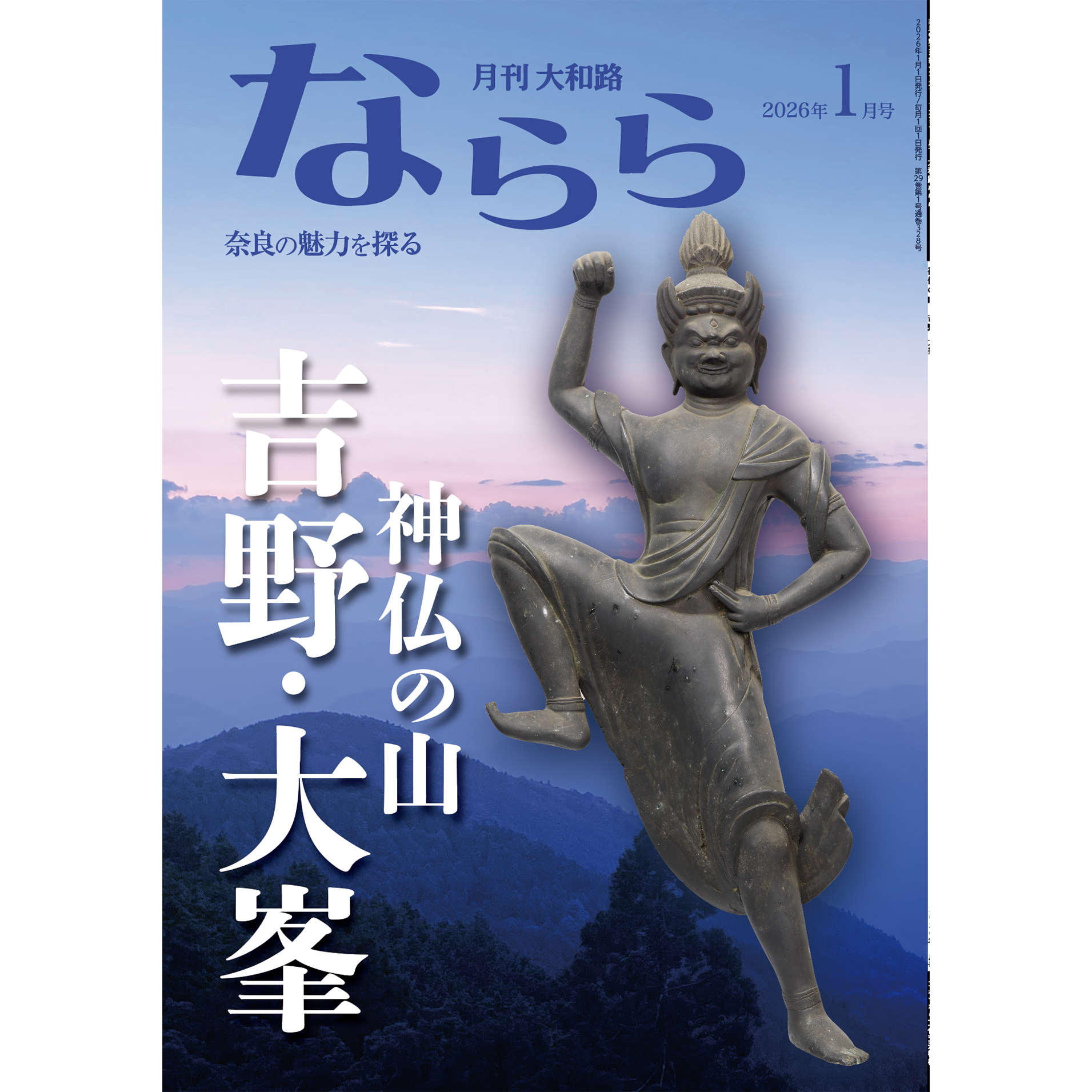 ならら2026年1月号:特集 神仏の山 吉野・大峯 アーカイブ 注文する2026年1月号(328号)ならら 2026年1月号:神仏の山 吉野・大峯2026年01月01日発売/定価660円神仏の山 吉野・大峯 MONTHLY※毎月定期的に連載させていただいています。詳しくは、定期連載の各ページをご覧ください。